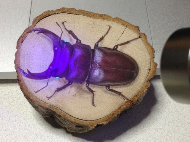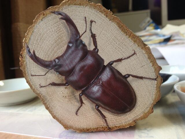 これも他のビートルシリーズと同じくクヌギの木(くぬぎ小輪切)に描いています。